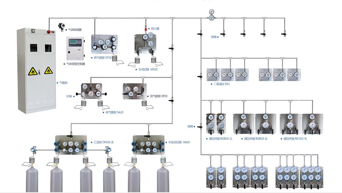 實驗室用氣根據(jù)工作要求不同,可有不同種類、不同等級的氣體,氣體等級有普通、純和高純之分。各類不同等級的氣體裝在鋼瓶中,一般都有商品供應(yīng)。其中有些氣體的鋼瓶是物制的,某些少量氣體還可以在實驗室制備。
