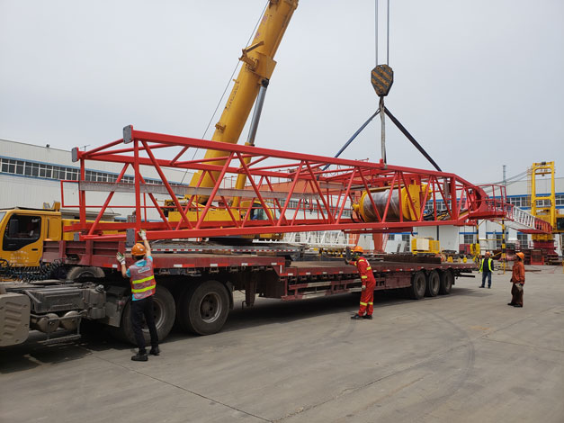 2018年5月21日凌晨5:30分左右,9輛貨車從青島市黃島區(qū)途經(jīng)青蘭高速發(fā)往青島城陽區(qū)天時海洋石油裝備有限公司,此次淳遠(yuǎn)服務(wù)的項目是“保稅物流一日游”業(yè)務(wù)。大約7點(diǎn)30分,貨車依次駛?cè)胩鞎r海洋廠區(qū)內(nèi),此次運(yùn)輸?shù)呢浳锟傊貫?69噸的設(shè)備機(jī)組,上午8時許,操作正式開始。
