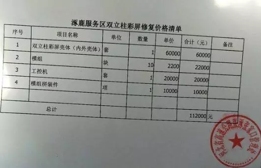 要知道一位商家按照最好的材料計(jì)算,這樣的顯示屏報(bào)價(jià)也只有1.8萬(wàn)-2.5萬(wàn)。真是不知道河北省高速公路張涿張家口管理處開(kāi)出的清單依據(jù)是什么。