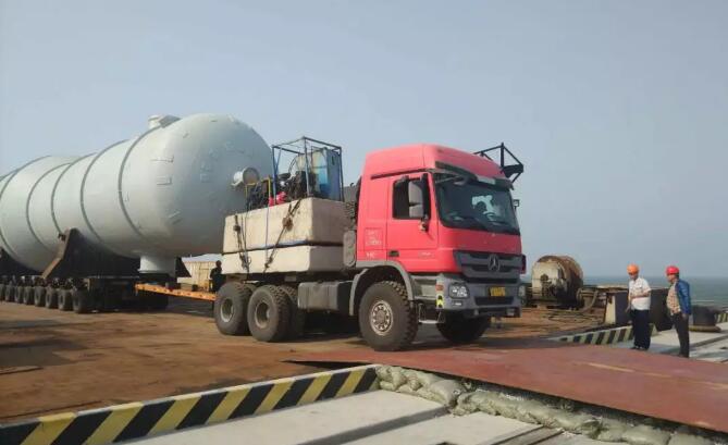 該船貨物是廣利港腹地企業(yè)定制的“脫乙烷塔”和“丙烯丙烷塔”,最大件長56米、體積1144立方米、件重280噸。貨物自大連旅順港裝船,通過水路聯(lián)運的方式,經(jīng)廣利港轉(zhuǎn)運至企業(yè),使公路運輸?shù)木嚯x縮減至最低,極大降低了企業(yè)的運輸成本