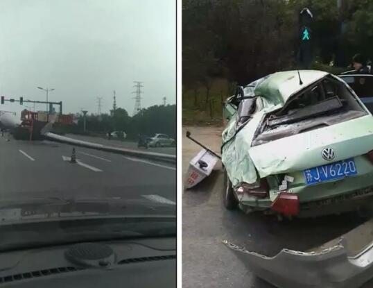 2019年10月10日上午10時(shí)左右,在疏港路228路段大橋下,一輛大貨車(chē)車(chē)上正載著一個(gè)長(zhǎng)幾十米的風(fēng)力發(fā)電葉片,在運(yùn)輸途中發(fā)生滑落與一輛行駛中的出租車(chē)發(fā)生了一起交通事故,出租車(chē)已嚴(yán)重變形,所幸出租車(chē)駕駛員無(wú)大礙。