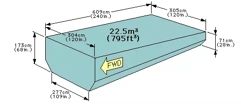 c. 針對散貨艙可以以下散貨艙的三維圖和散貨艙裝貨的三維矩陣圖: